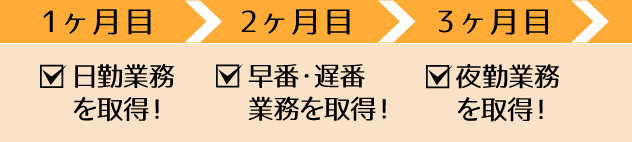 昼食のお手伝いから入り、夜からは就寝のサポートを行います。