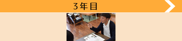3ヶ月後は、担当の先輩スタッフ(3年以上経験あるスタッフ)が、悩みの相談や、一緒になって毎月の目標を立てたり、目標の達成状況等を話し合いながら、新人職員がやり甲斐を見出せるよう、一緒に取り組んでいます。
